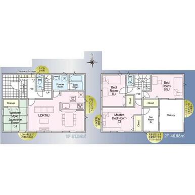 | 設備 | カウンターキッチン システムキッチン 床下収納 モニタ付インターホン ディンプルキー 防犯カメラ 複層ガラス 浄水器 IHクッキングヒーター 3口以上コンロ 浴室暖房 浴室乾燥機 ルーフバルコニー サンルーム 人感センサー付照明 火災警報器(報知機) 温水洗浄便座 トイレ2ヶ所 | ||