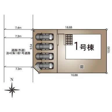 号棟番号:1号棟 積200平米以上500平米以下、建物高さ10m以下、地下を除く階数2以下) 延床面積に別途ルーフバルコニー約9.72平米有り |